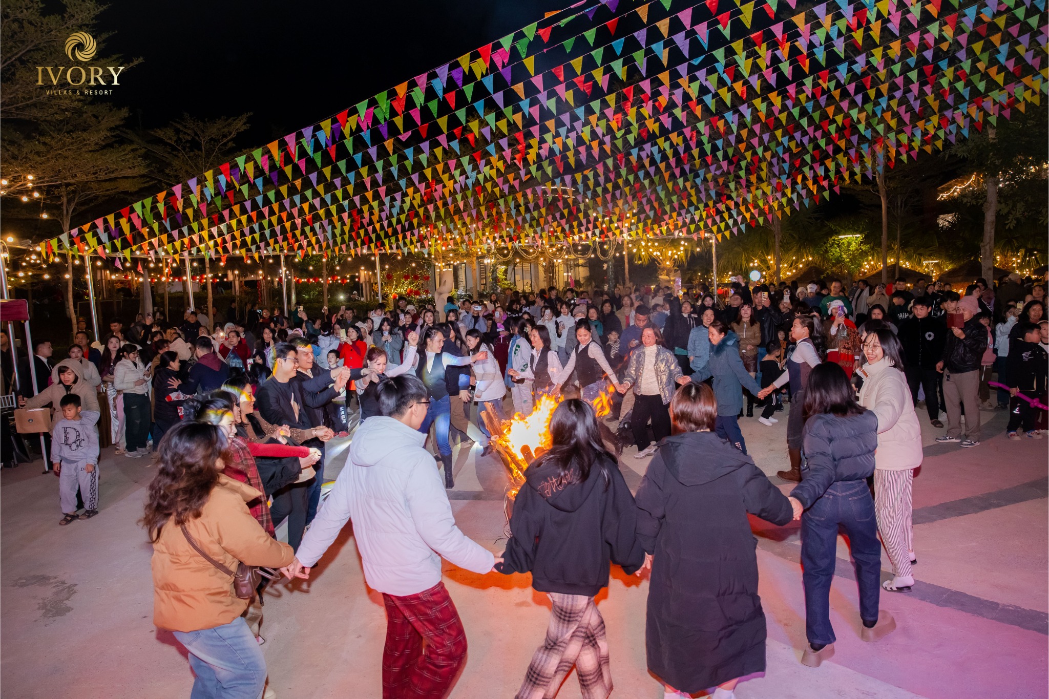 Du khách trải nghiệm hoạt động đốt lửa trại tại Ivory Villas & Resort